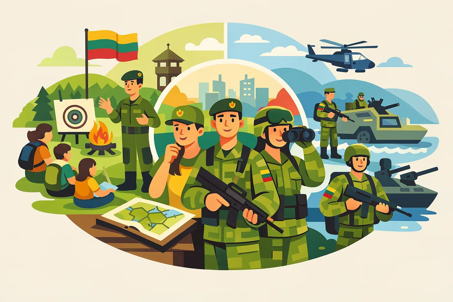 Užduotys padeda mokiniams suprasti Lietuvos kariuomenės vaidmenį valstybės gynybos sistemoje. Mokiniai analizuoja kariuomenės funkcijas taikos ir karo metu bei jų reikšmę nacionaliniam saugumui.